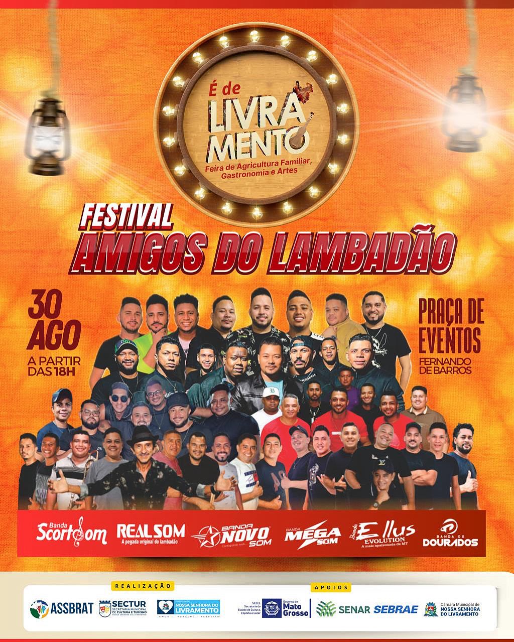 Nossa Senhora do Livramento se prepara para um grande encontro cultural neste domingo, 30 de agosto. A já tradicional Feira É de Livramento, conhecida por valorizar a agricultura familiar, gastronomia regional, artesanato e manifestações culturais da baixada cuiabana, traz neste ano uma grande novidade: o Festival Amigos do Lambadão.