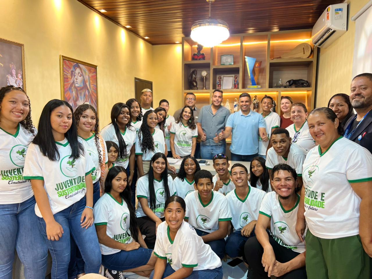 O prefeito de Nossa Senhora do Livramento recebeu na manhã desta quarta-feira um grupo de mais de 30 jovens da comunidade de Figueiral, participantes do projeto Juventude e Sustentabilidade, em uma visita especial aos espaços de poder e gestão do município.